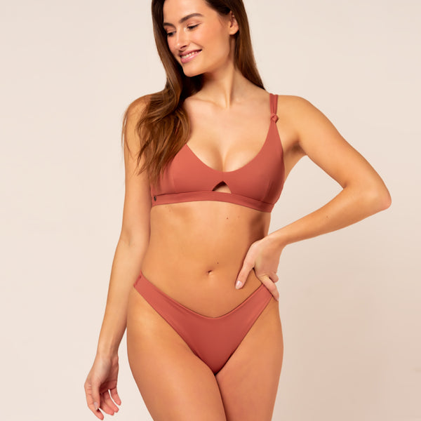 Innovative yet sophisticated is the cheeky and sporty design of the cut-out bustier top. This versatile bikini top is born from the ocean and designed for an environmentally conscious woman who loves to integrate the ocean into her life. With the Coral, you can do pretty much anything you can imagine; a sunset surf session, yoga at the beach, or dancing throughout the night.