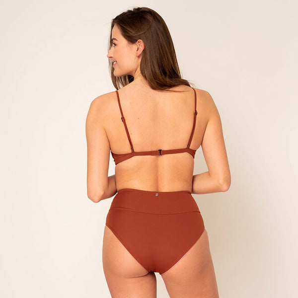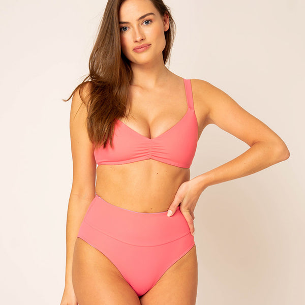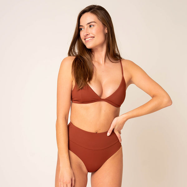 This extremely comfortable bikini bottom you will not want to take off again, I promise! Made from recycled fabric and Designed to give you confidence and ultimate comfort in and out the water; without compromise on femininity and style. These modern bottoms are high-waisted with a small shaping effect and a soft elastic waistband. A moderate fit will offer you enough coverage while still having lots of fun.