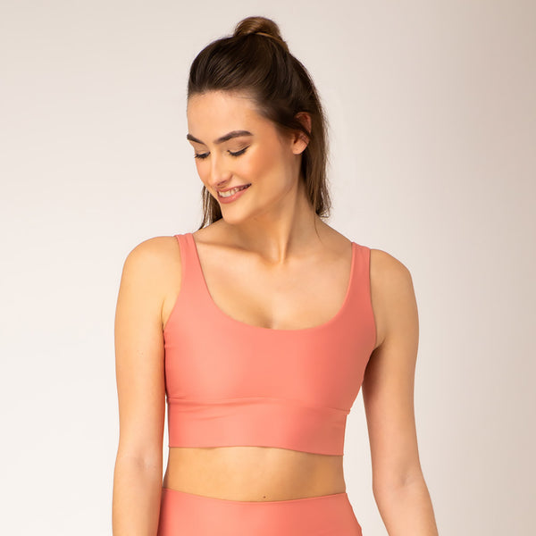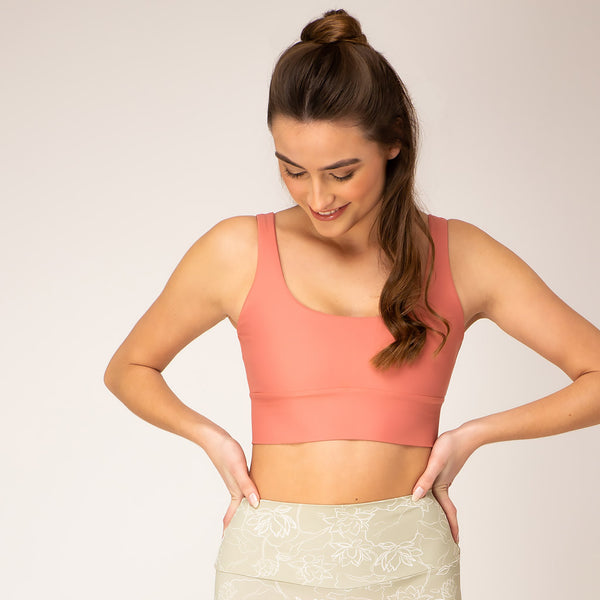 This top features a flattering scoop front and a low scoop back. A wide chest band provides enough support to make you feel secure & free. A total win on and off the mat.